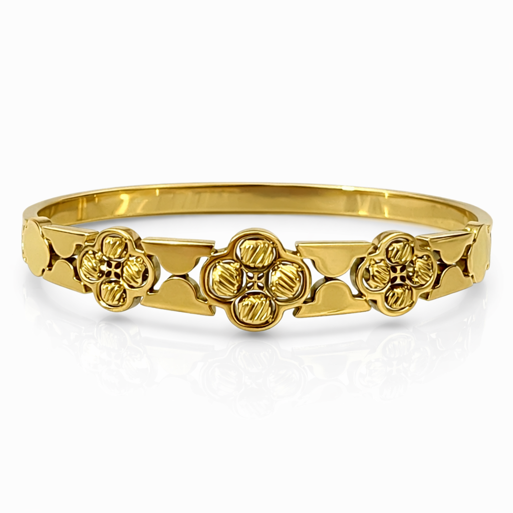 *Nickelfrei *Wasserfest *Edelstahl *18K Vergoldet *65mm Durchmesser Der "Lucky Clover" Armreif ist ein bezauberndes...