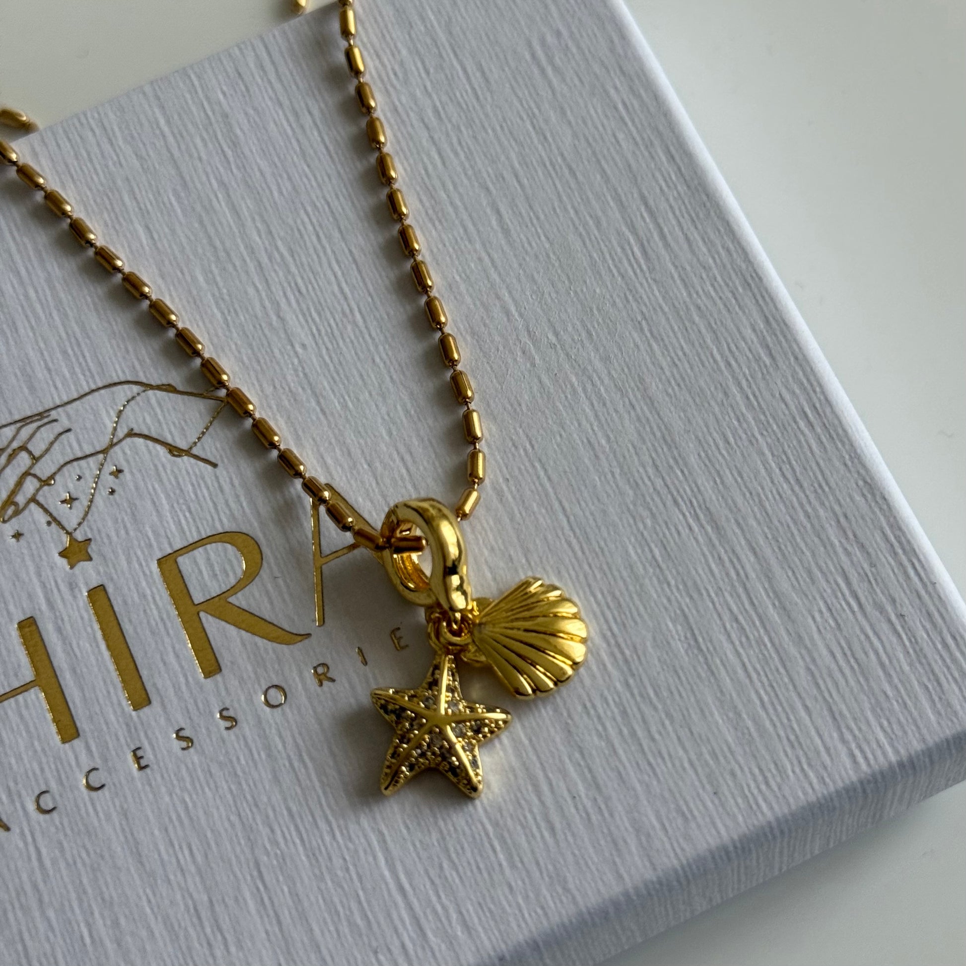 Diese elegante Halskette mit Muschel- und Seesternanhänger bringt maritimes Flair in deinen Alltag. Der detailreich verzierte Seestern mit funkelnden Zirkonia-Steinen symbolisiert Leichtigkeit, Freiheit und die Schönheit des Sommers. Die filigrane Muschel steht für Schutz und innere Ruhe – gemeinsam ergeben sie einen stilvollen Begleiter mit besonderer Bedeutung.