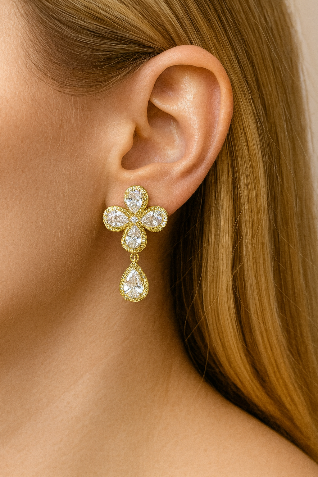 Die Golden Clover Drop Ohrringe bringen das Leuchten kostbarer Momente direkt an dein Ohr.
