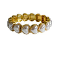 Verspielt, feminin und voller Liebe – das Heart Glow Armband verzaubert mit eleganten Herzformen aus schimmernden Perlen, eingefasst in glänzendes Gold. Dank des elastischen Designs passt es sich sanft deinem Handgelenk an – ganz ohne Verschluss, aber mit maximalem Komfort.